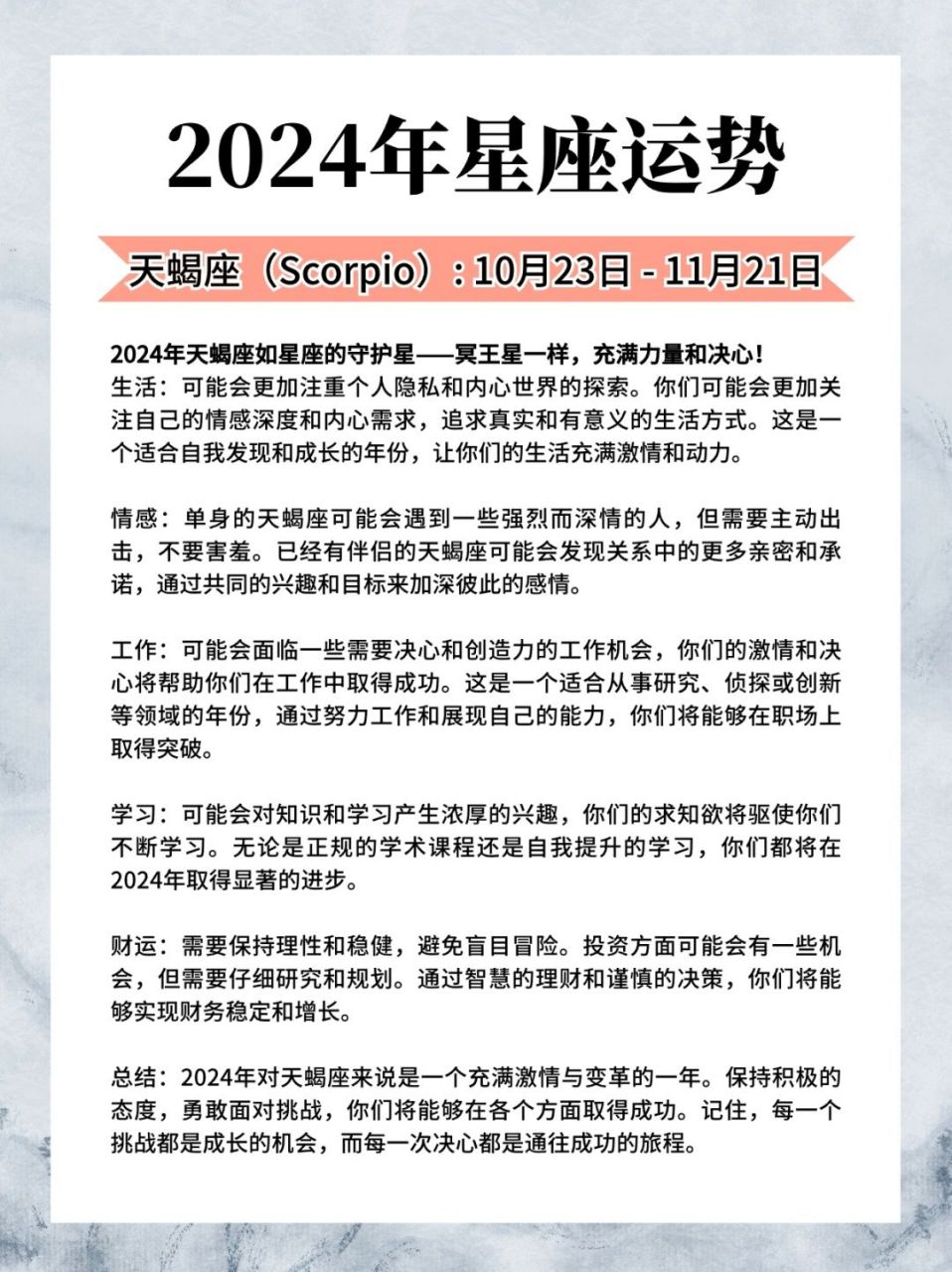 2024年将是一个充满希望和挑战的一年,对于十二生肖来说,每个生肖都将面临不同的运势和挑战接下来,我们将详细介绍2024年每个生肖的运势,帮助大家更好地规划和准备;八字测2024年... 2024年将是一个充满希望和挑战的一年,对于十二生肖来说,每个生肖都将面临不同的运势和挑战接下来,我们将详细介绍2024年每个生肖的运势,帮助大家更好地规划和准备;八字测2024年运势免费 了解2024年的运势可以让我们提前做好准备,把握机遇,规避风险通过八字测算,可以帮助我们预测各方面的运程,为未来规划;1八字运势免费测算 八字运势免费测算 八字,又称四柱,是中国传统命理学中用来预测人一生命运的一种方法从古至今,八字测算一直受到人们的重视;1流年运势免费 流年运势免费了解来年的机遇和挑战 在即将到来的新一年里,每个人都期待着了解自己的运势想知道你明年将面临什么挑战和机遇吗。