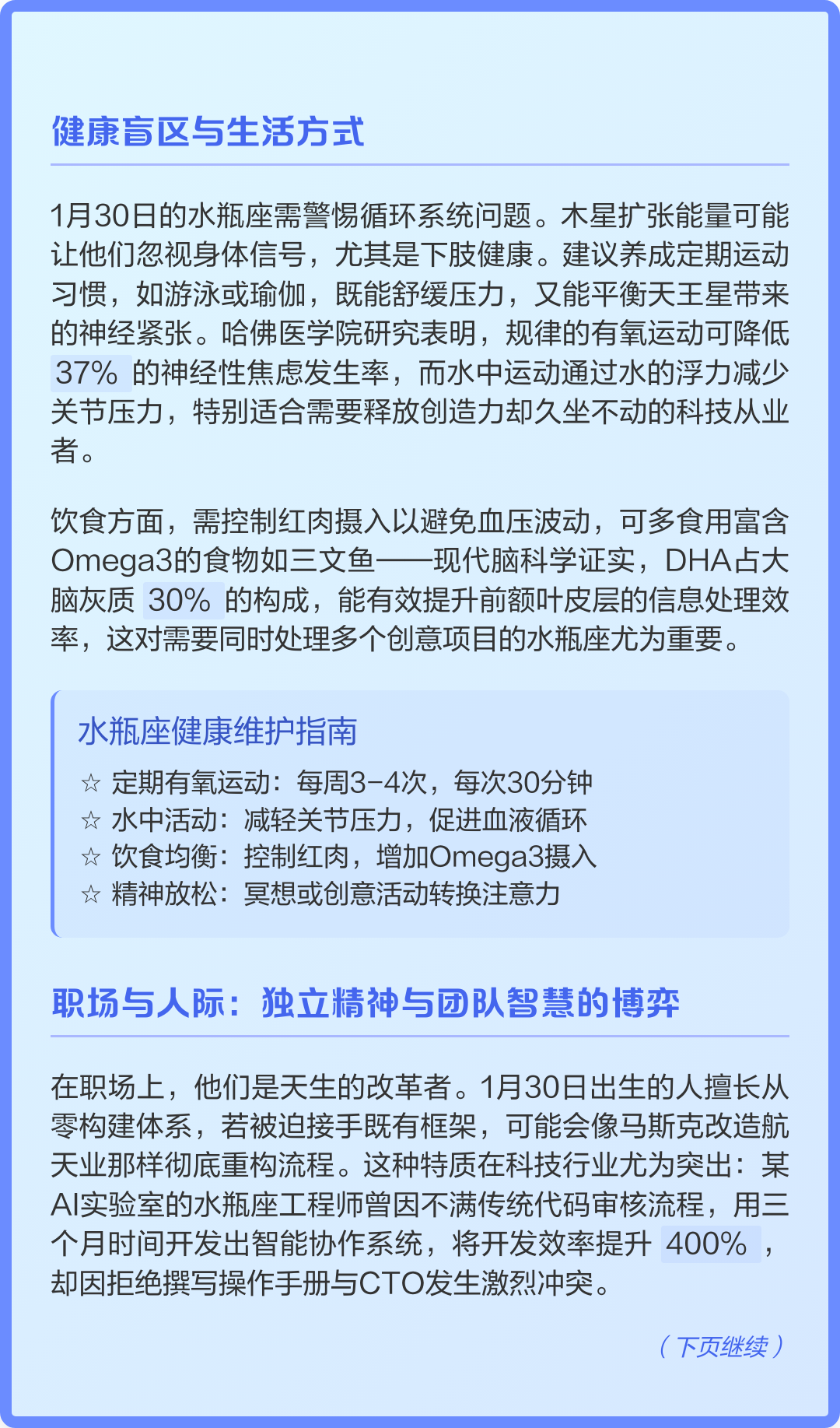 水瓶座出生于1月30日水瓶座的人通常有创新的思维和独立的个性他们喜欢追求自由,关注个人独立性和独特性水瓶座的人通常很有创造力,善于与。