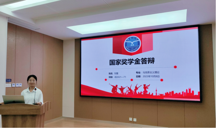 3、毕业生依抽签顺序进行58分钟的汇报本次答辩以线上线下相结合的方式进行,较好地就毕业论文进行汇报和学术探讨在答辩现场。