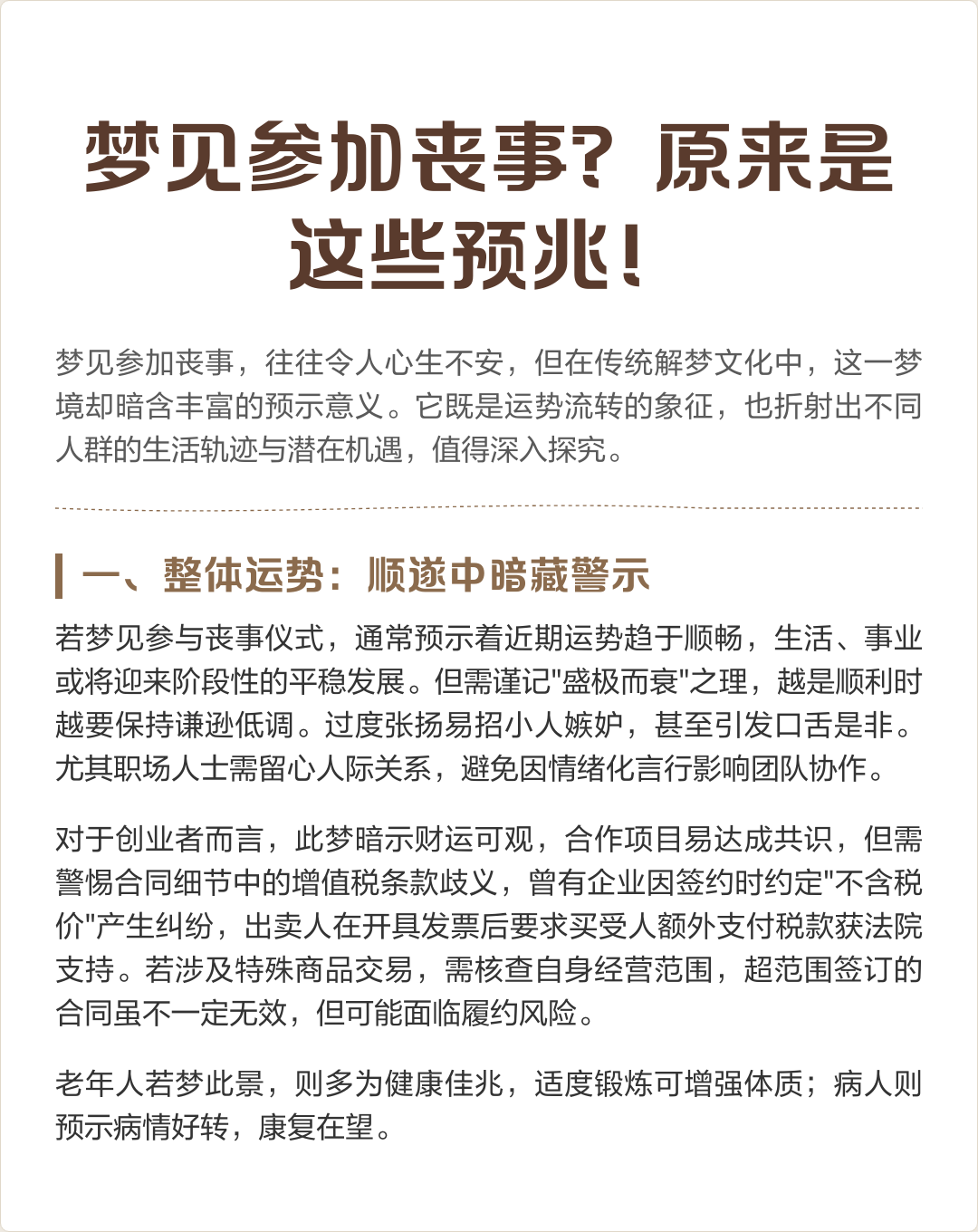 比如,权威的梦学典籍周公解梦里就有明确的记载,“梦见葬礼,是生官发财之兆”,这句话的核心逻辑在于,“葬”与“藏”谐。