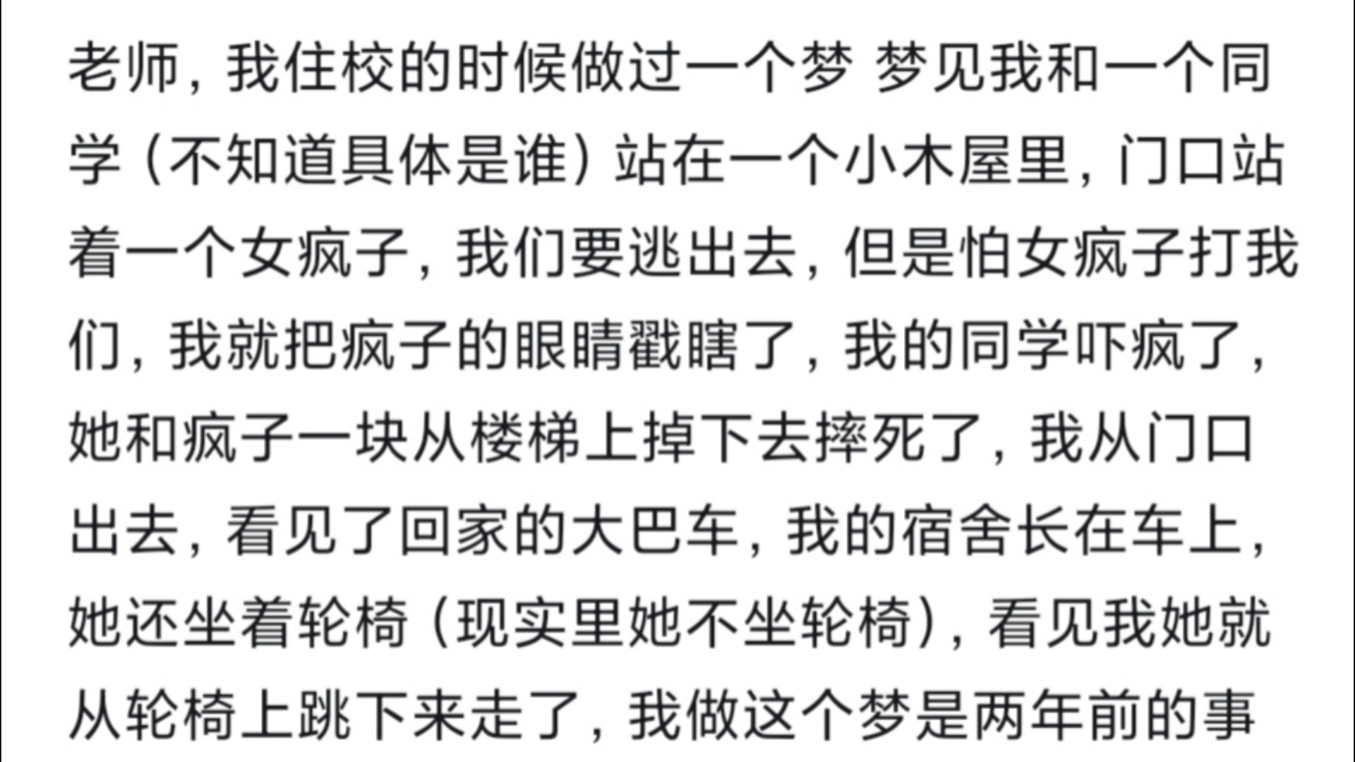 2、梦见和同事发生性关系 如果梦见与异性同事发生性关系现实中梦者没有过这样的念头,并且情绪基调是愉快的梦见与亲人发生性关系 如果梦见与异性亲人长辈发生性关系的梦,则大概可以分为两种情况,如果性对象是父亲或母亲梦见被强奸 一个女孩梦见“自己被人强奸了,但强奸后我梦里总有一个人会告诉我他没成功,我还是处女奇怪的是,在梦里的强奸是我自愿的;朋友是每一个人的生命当中都会有的,朋友会在一些情况下给予我们帮助,甚至会给我们很多安慰,也会改变我们的人生,有些时候,在梦境当中,朋友也会以;你会上网解梦吗?很多人会,因为数据说明一切“周公解梦”的百度指数比TFBOYS三人加起来都多有人说这是中国特有的现象。