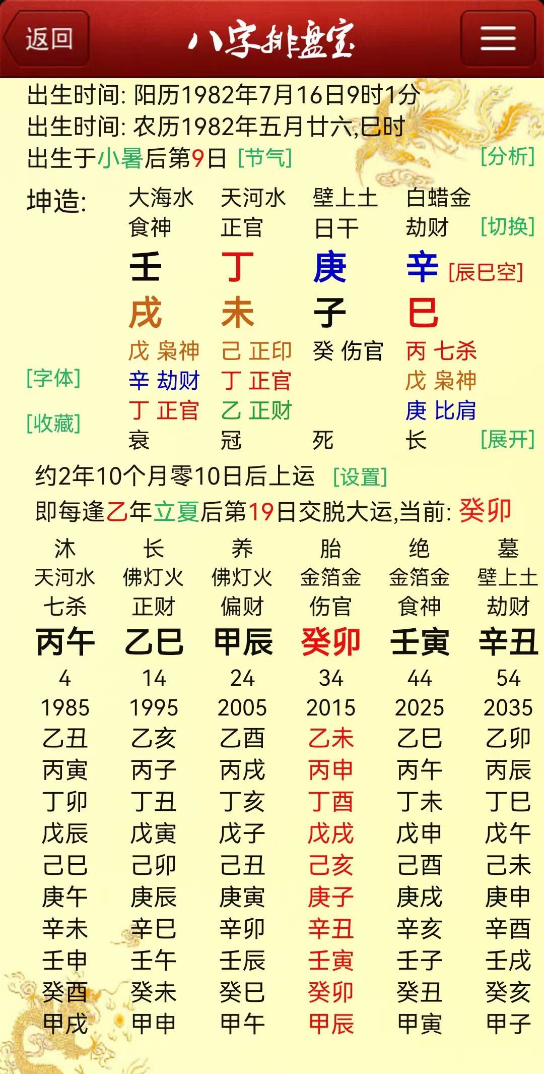 现运戊申,申金当值生扶偏印,且两申冲克寅木,寅木无法为午火供给营养,此为婚后多年未孕的命理原因生育时机方面,戊申运中。