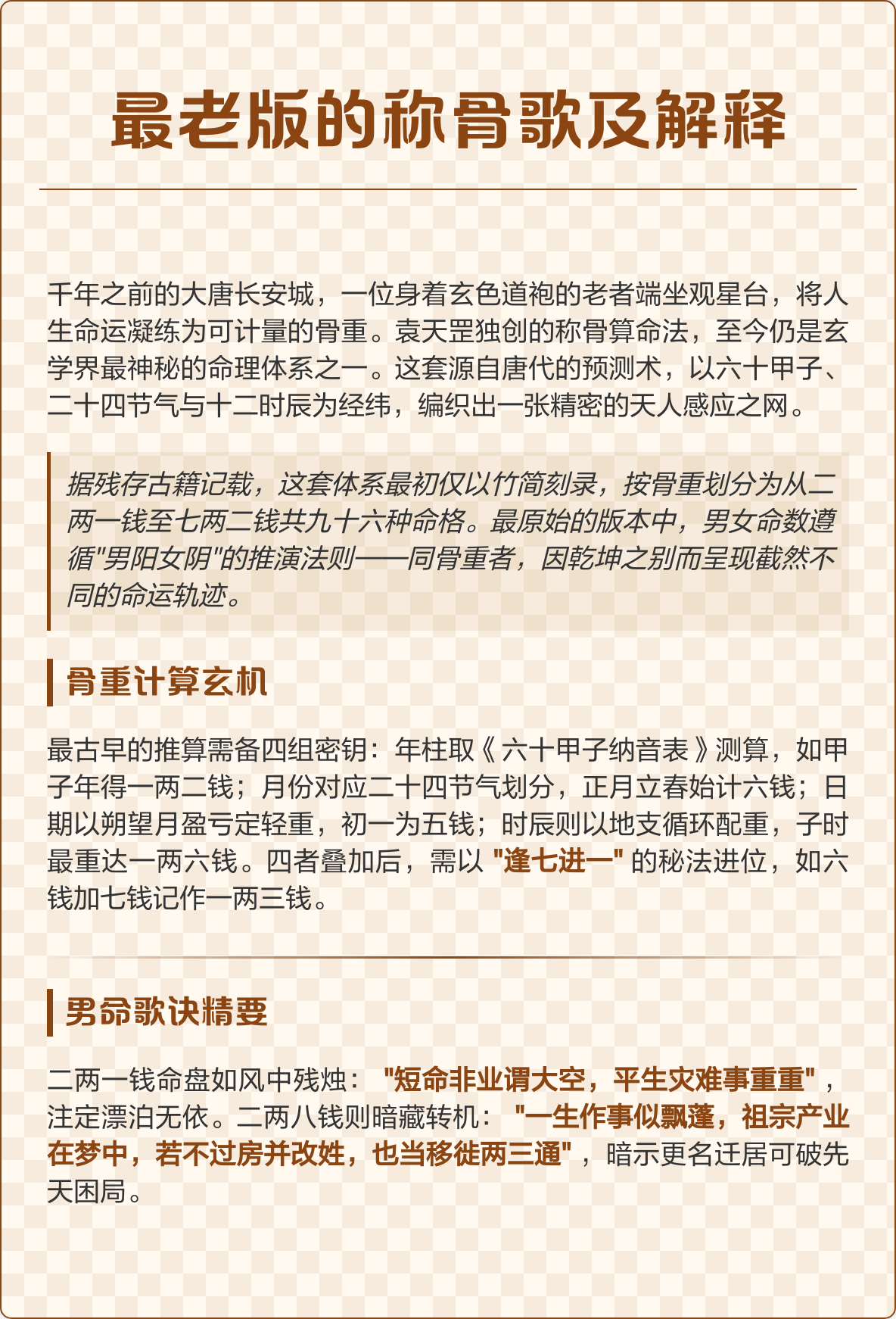 便可以查找到对应的命运,不过男版女版的称骨算命表差异很大,从而导致两者的命运有所不同今天要说的男版称骨算命法,快来看。