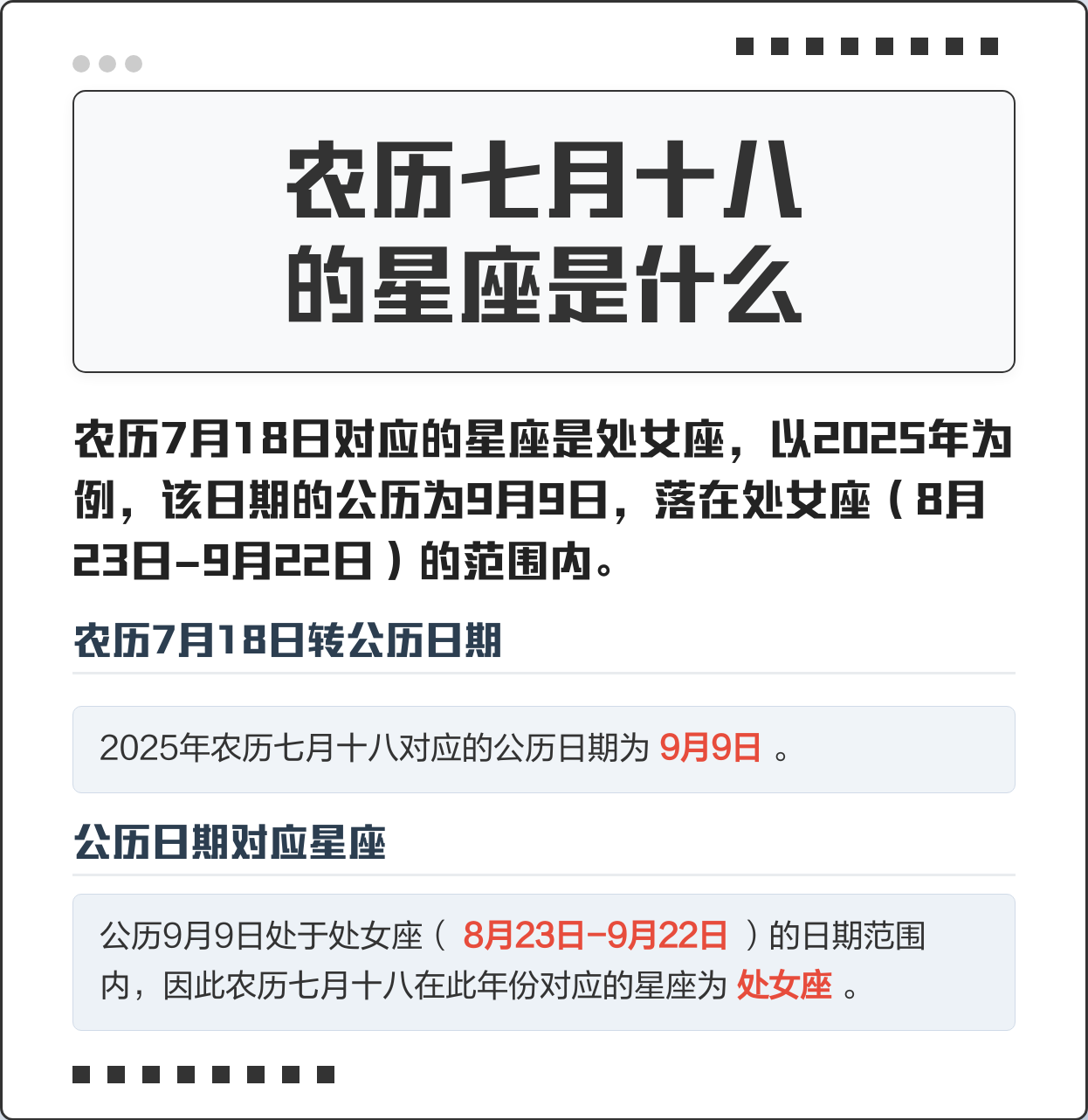 4、阴历七月是巨蟹座或狮子座 巨蟹座一般出生日期为6月22日7月22日,巨蟹 狮子座一般出生日期为7月23日8月22日,狮子座是火象星座,他们爱憎分明。