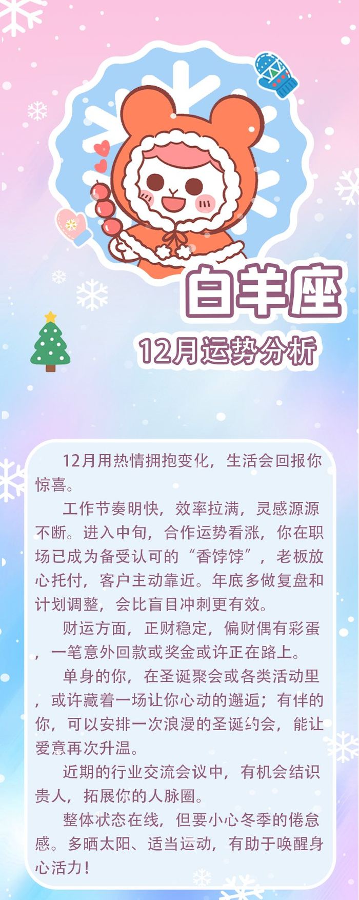 第一名白羊座 事业运指数 12月是白羊座们在事业上收获掌声的时候月下旬,水星和太阳梦幻联动,受到水星的宠爱和太阳的照耀第二名天蝎座 事业运指数 12月天蝎们迎来了开挂的事业运!是金... 第一名白羊座 事业运指数 12月是白羊座们在事业上收获掌声的时候月下旬,水星和太阳梦幻联动,受到水星的宠爱和太阳的照耀第二名天蝎座 事业运指数 12月天蝎们迎来了开挂的事业运!是金子总是会发光的!本月还没到来之前的天蝎座就是那块被埋没了的金子第三名金牛座 事业运指数 12月的金牛座事业运好到爆!你们一直都是走那种少说话多做事的风格路线,勤勤恳恳做事。