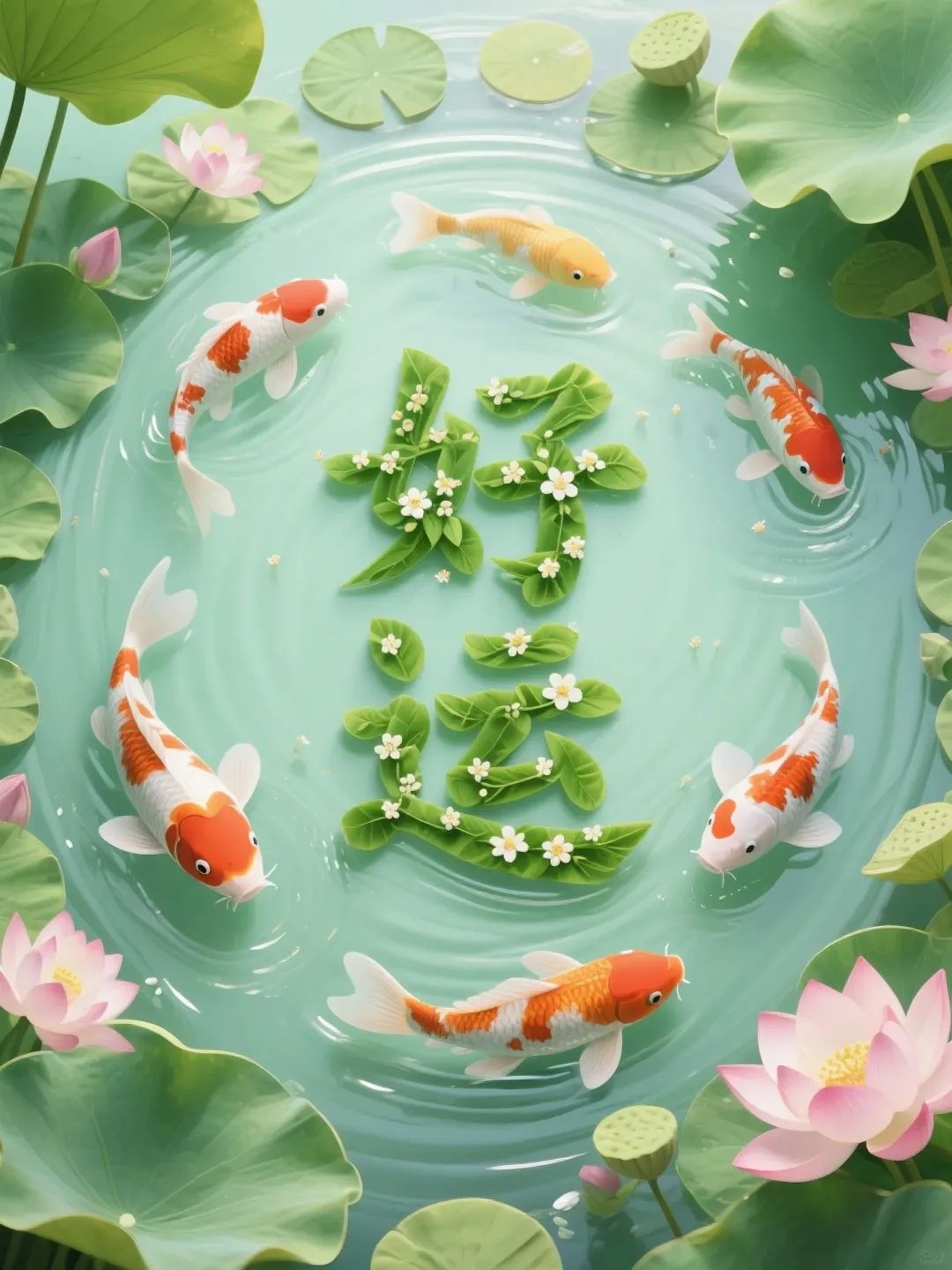 6、清水涟漪的池塘中,莲花荷花交错生长,池子里面的小鱼上蹿下跳,为水波粼粼的池水又是增添了一点生机,夏天就是一副生机勃勃的样子一阵微风拂。