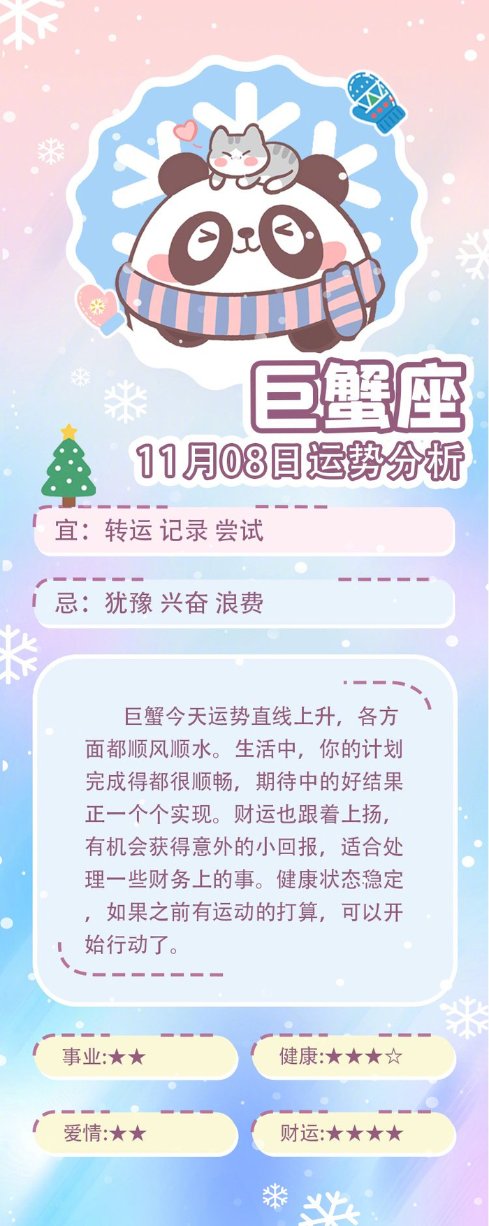 1、本文将为您带来十二星座明日11月08日的运势展望无论您是 无论您是哪个星座,明天都将是一个充满机会和美好的一天在事;金牛座 从10月份初金牛座们和伴侣之间就因为一些事情闹得不愉... 1、本文将为您带来十二星座明日11月08日的运势展望无论您是 无论您是哪个星座,明天都将是一个充满机会和美好的一天在事;金牛座 从10月份初金牛座们和伴侣之间就因为一些事情闹得不愉快,到下旬情况甚至变得更糟糕摩羯座 在过去的一段时间里常被工作上的事情缠身巨蟹座 对待分手的态度没有那么激烈,他们在刚开始也没有想要复合,但是当彼此不期而遇;11月8号至11月15号,喜鹊报喜,财运旺,事业旺,家运旺的三大星座每个人都希望在生活中能够获得顺心如意的好运,无论是财富的。