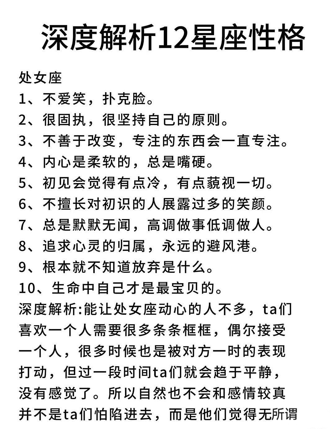 2、全方位总结十二星座特点,帮你更好的了解你想了解的人当处女座是一种什么体验1太美了活着好累2一脸生人勿近3对;那么下面就让我们一起来看看12星座男女的长相特征吧白羊座白羊座的人多长得正气,而且性格冲动急躁,易怒易笑,心里有什么;十二星座各有特点那么这些特点到底用什么词语来形容好呢?咱们诸暨话简直就是一针见血! 诸暨话的优势就这样稀里糊涂被曝光了是。
