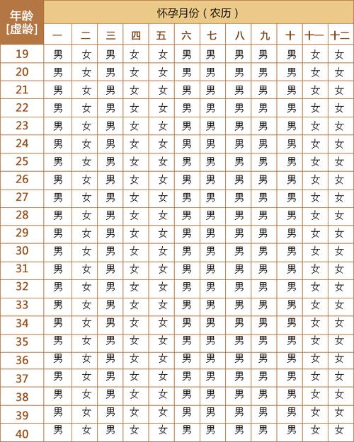 4、内部资料,仅供参考男生女计算公式一怀孕农历月份双乘+孕妇农历生日月份怀孕时虚龄+19=,得出结果数字尾数为单是男孩,尾数。
