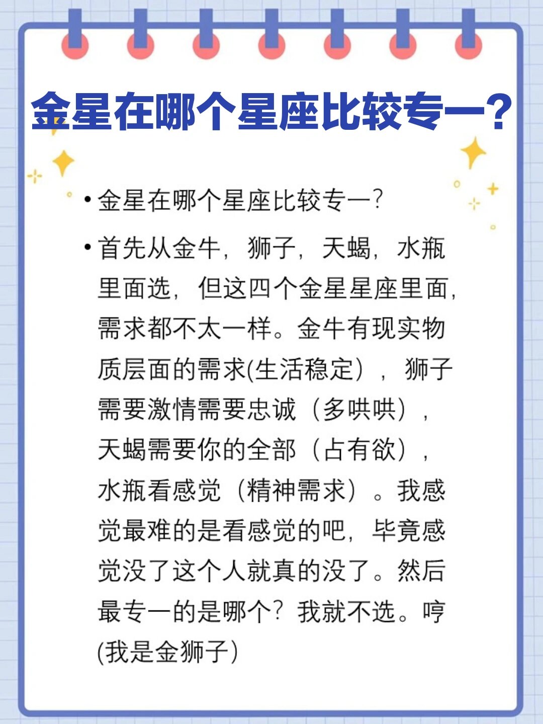 3、Taurus星座女神莫小奇工作方面 金星换座之后,你可能会吸引到一些和跨界合作培训交流出版发行相关的机会临近过节,涉及;Hi,各位星座小伙伴们,今天来搞点不一样的~让我们一起探秘自己内心的感情状态吧!金星不单是吉星,也是爱意的小天使它在你;在占星学里,太阳星座决定了我们的自我内核,而金星星座,才是解锁爱情偏好的终极密码它代表着我们的审美价值观与情感表达。